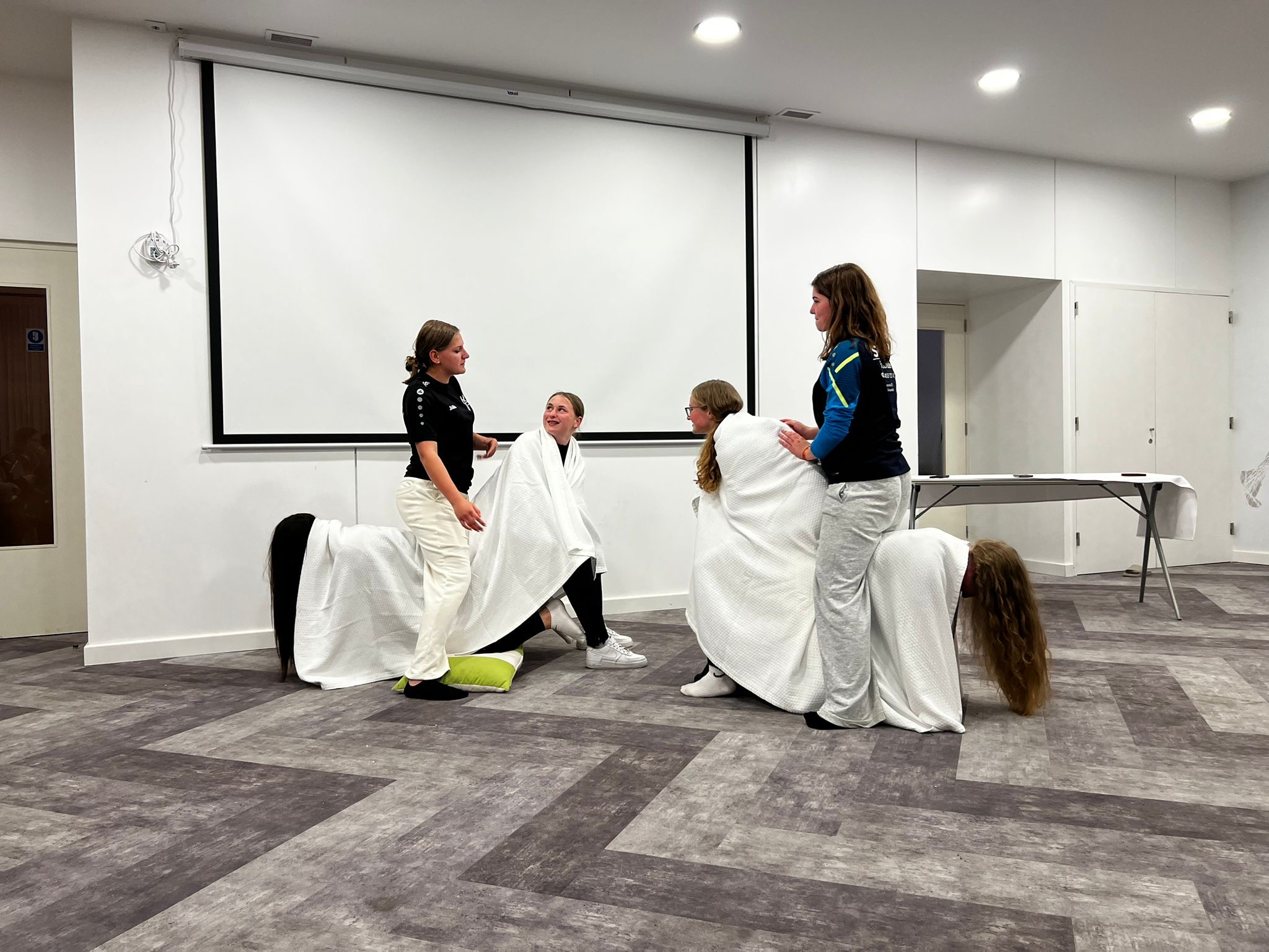 Sarina wurde mit einem Geburtstagsständchen überrascht. Desweiteren stand die Mutprobe der Neulingen an. Mit einem Rollenspiel, Tanzeinlagen und Musikremixen überraschten sie uns und es flossen einige Lachtränen 😂 Wämsi schwingte sein Tanzbein und José präsentierte sein Grr.. Als Matchvorbereitung für den nächsten Tag, traffen wir uns wie immer an der Bar.